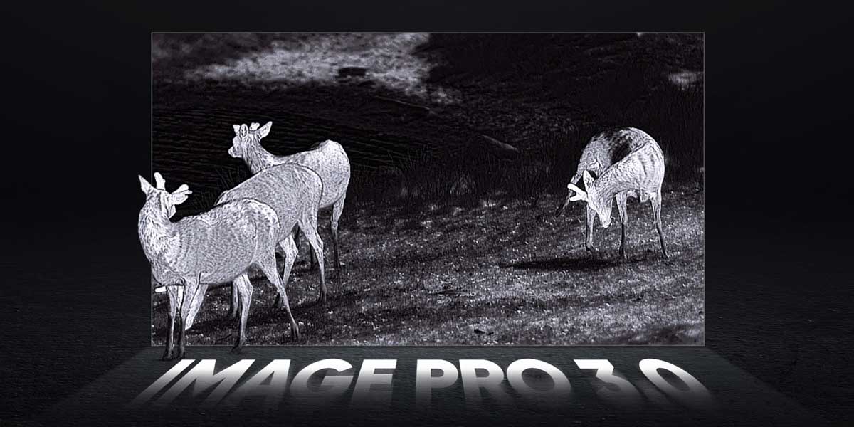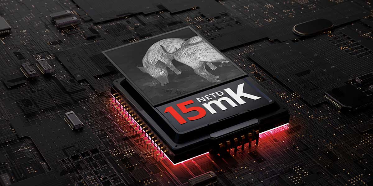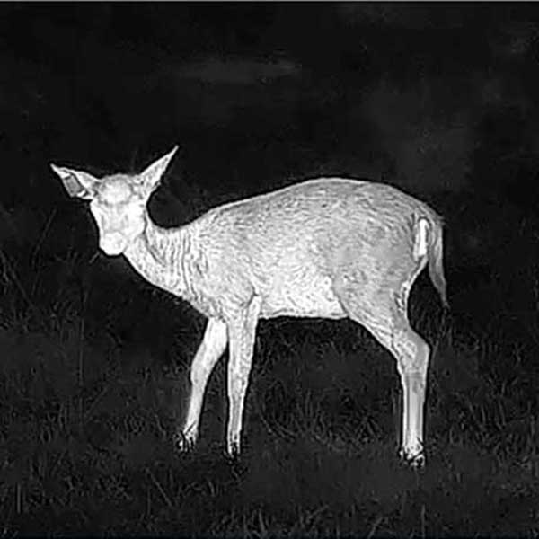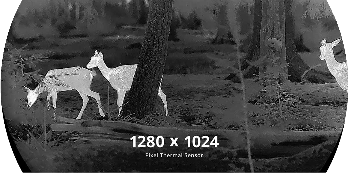 Durch die hohe Wärmeempfindlichkeit und das detailreiche Wärmebild lassen sich Wild, Umrisse und Bewegungen auch bei völliger Dunkelheit klar erkennen.