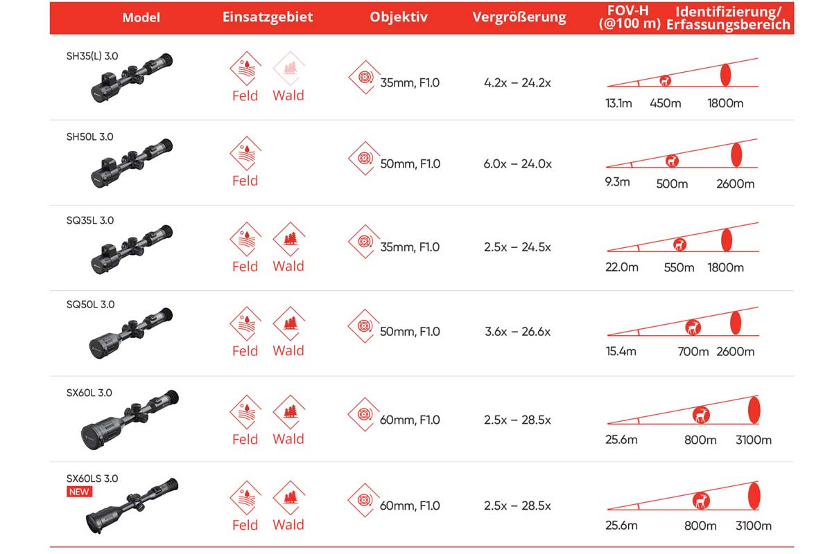 Langstreckenjagd: Besonders geeignet sind SQ50L 3.0 und SX60L 3.0 mit LRF und Ballistikfunktion.